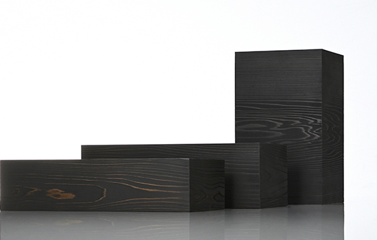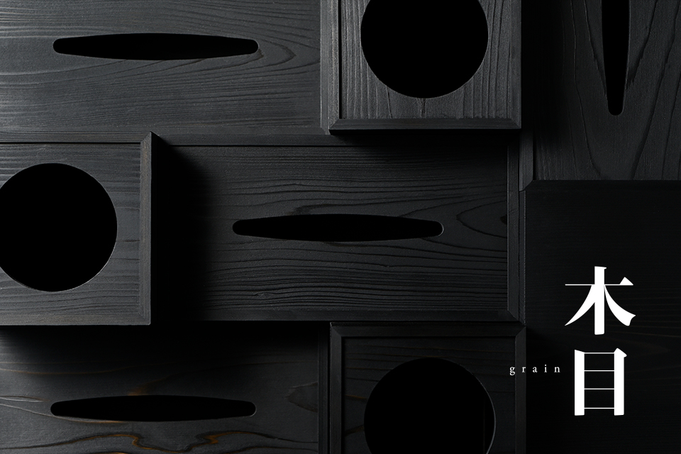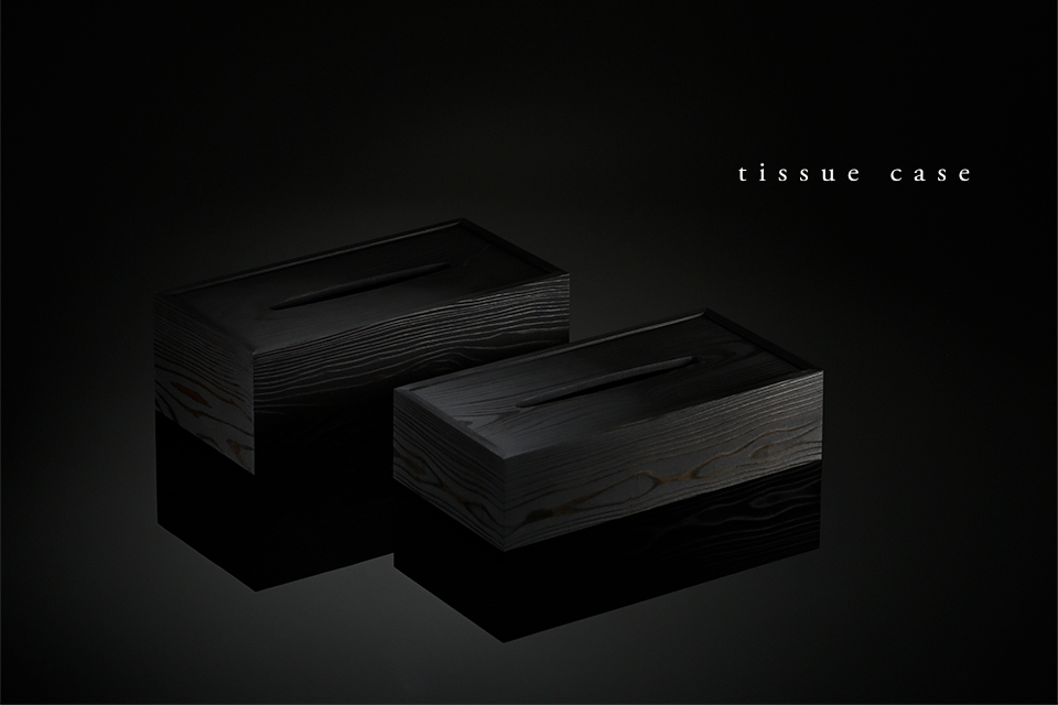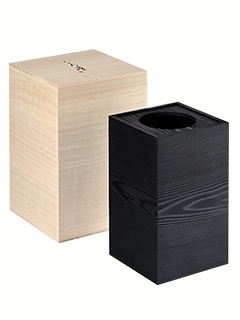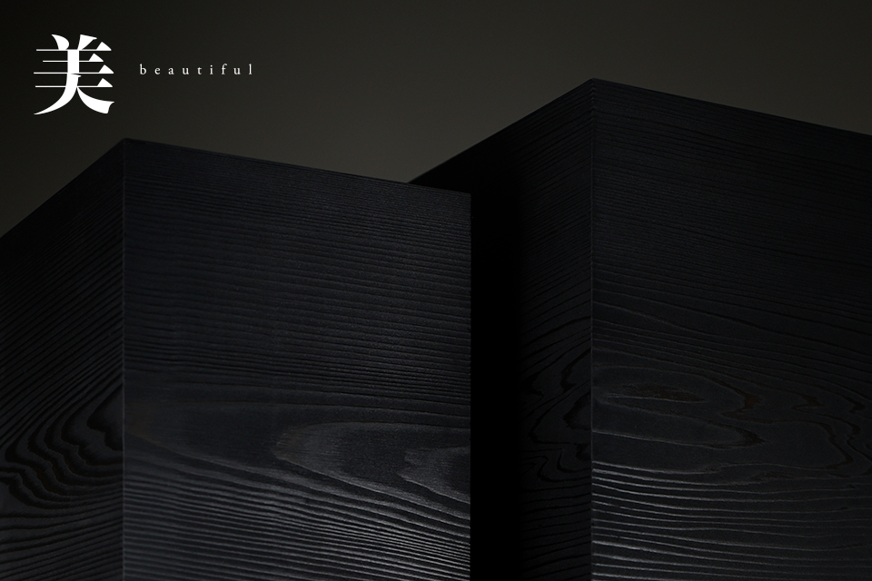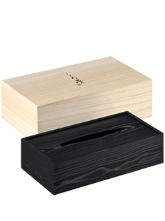 You realize that the surface grain surrounds the side plate of the box completely when the side plates are made of four pieces of the timber cut out continuously from one sugi material. The surface of all goods is finished by‘urushi‘ coating.